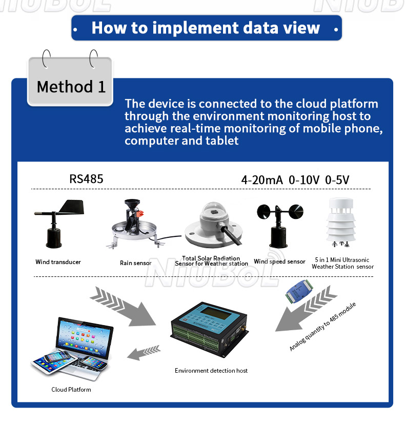 Sensors are divided into air temperature sensors, atmospheric pressure sensors, carbon dioxide sensors, page temperature sensors, soil moisture sensors, wind speed and direction sensors and so on. At present, as many as a dozen sensors can be equipped. Different monitoring environments need to measure the parameters are different, so when buying equipment to tailor, choose five-parameter, six-parameter, nine-parameter weather station, etc.